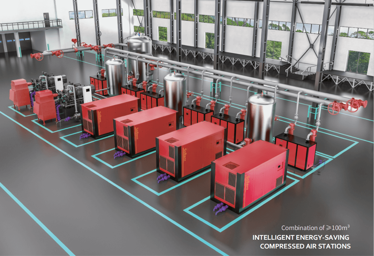 Sollant containerized screw air compressors combine efficient screw compression technology to provide continuous, stable, oil-free, and low-maintenance compressed air solutions.